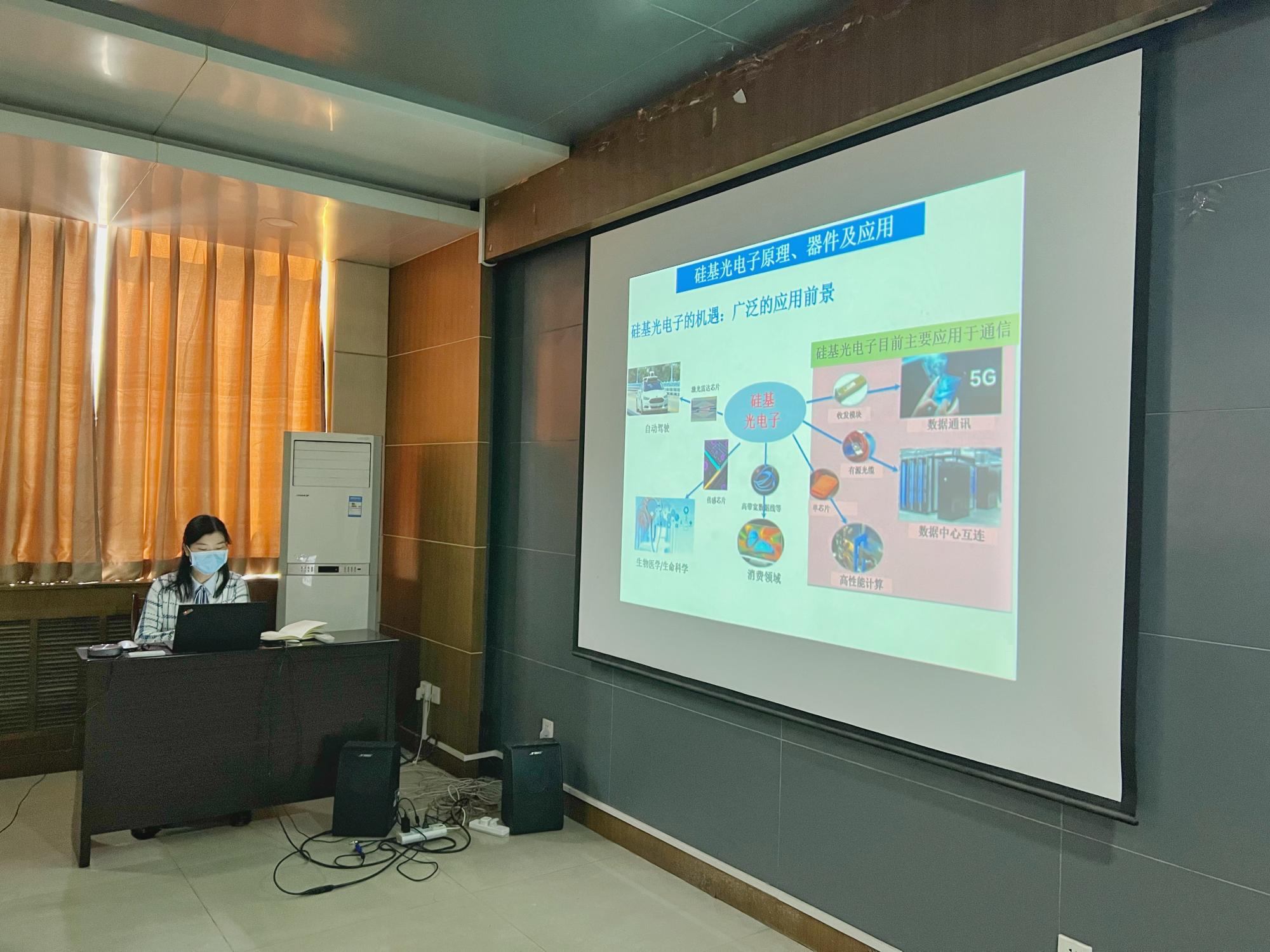 首先,廖家莉为大家带来“硅基光电子原理、器件及应用”的主题报告,报告中对硅基光电子的应用前景、功能器件和集成系统进行了详细介绍,分析了硅基光电子在高速计算、数据通信、万物互联等多个领域广阔的发展前景。结合国家重点实验室基金等多项国家级和省部级科研项目的科研经历,廖家莉分享了工作以来在硅基光电子学的理论研究和光电集成芯片的开发与应用的研究经历,并分享了申报青年基金的经验心得。