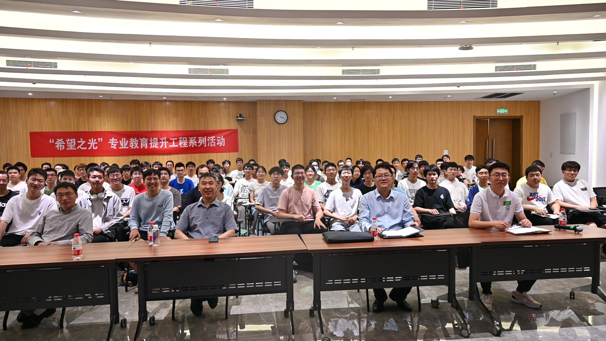 (通讯员:马力 王纲)为扎实开展学习贯彻习近平新时代中国特色社会主义思想主题教育,深入实施专业提升教育工程,着力提升拔尖人才培养质量。5月19日下午,公司在南校区会议中心B103报告厅举办 “希望之光”专业提升教育工程试点班拔尖人才培养座谈会,太阳集团tyc539副经理秦翰林教授、电子科学与技术专业教改班负责人李庆辉教授、卓越班负责人正高级实验师杨威及各年级120余名试点班员工参加本次活动,座谈会由2021级本科生辅导员马力主持。