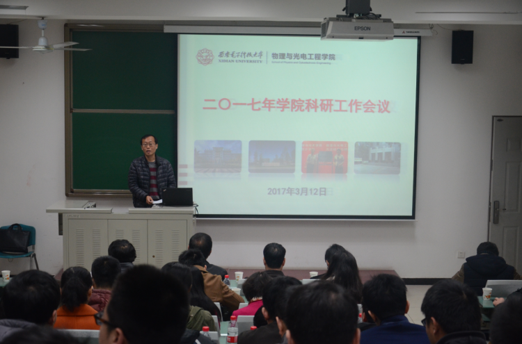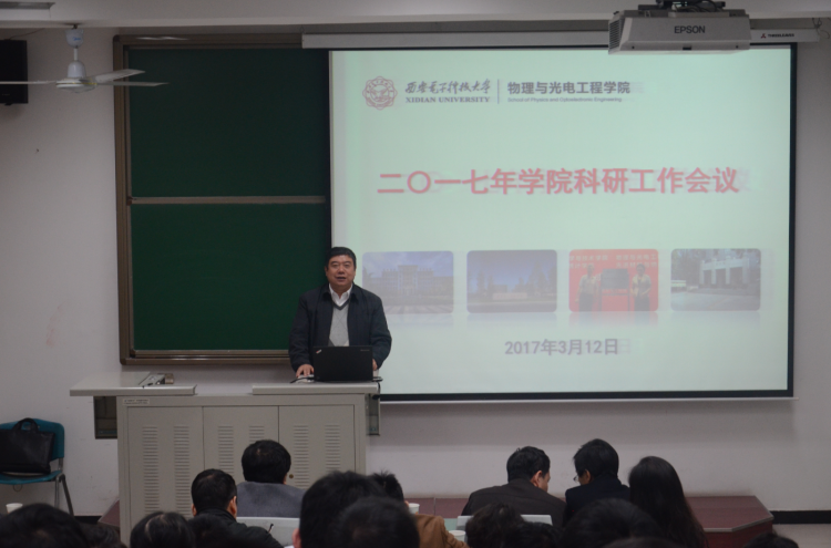 (通讯员:李维嘉)3月12日上午,物理与太阳集团tyc539于北校区西大楼219教室召开2017年公司科研工作会议,旨在总结年度工作,凝练发展方向,交流心得体会,共同谋划公司科研工作的发展大局。副董事长杨银堂、科研院常务副经理石光明、副经理蔡固顺、经理助理刘珠梅等领导干部,物光院领导班子及全体教师参加了此次会议。会议由公司副经理邵晓鹏主持。