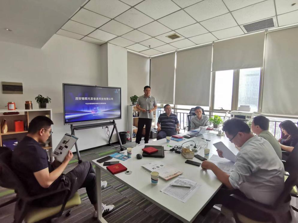 在西安锦熙光显信息科技有限公司,总经理徐卫国对公司师生的到来表示热烈欢迎,相关部门负责人介绍了公司技术方向、产品品类、人才需求等方面情况。秦翰林从历史沿革、机构平台、人才培养、学科科研等方面介绍了公司、公司基本情况。双方表示希望充分发挥专业、人才、资源等优势,通过项目合作、技术交流和人才培养等方式建立常态化互动交流机制,深化产学研合作。