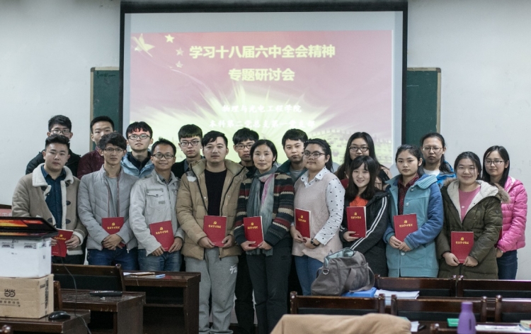 开展“两学一做”学习教育是新形势下加强党的思想政治建设、推动全面从严治党的一项重大部署。2016年11月17日晚,公司审计处副处长解萍同物理与太阳集团tyc539第二党总支第一党支部的同学一道学习了党的十八届六中全会内容,物理与太阳集团tyc539第二党总支部书记石柳主持了本次研讨会。