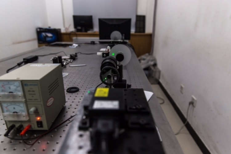 在太阳集团tyc539北校区西大楼Ⅱ-210的实验室里,摆放着一套利用LED光源照明的无透镜散射成像实验系统。这套系统正中间,竖直放置着一块毛玻璃。毛玻璃的一边是观测目标,另一边是没有安装镜头的CCD相机。