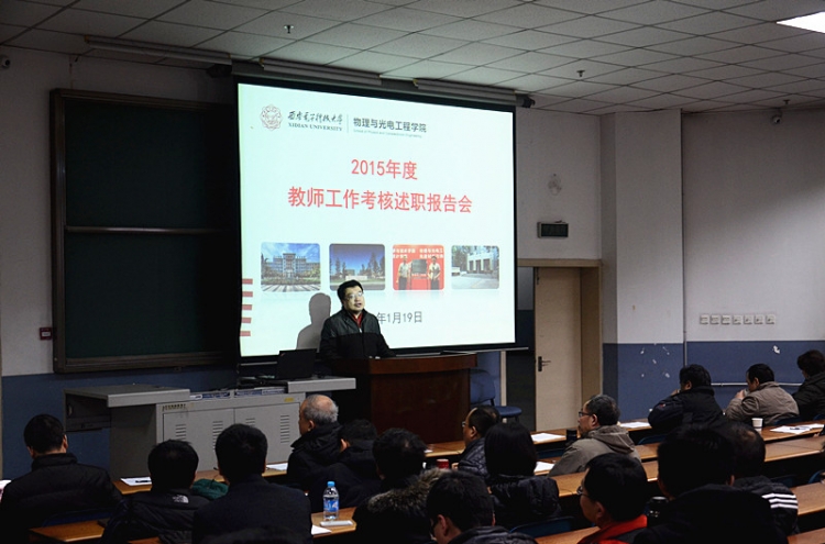 1月19日上午,物理与公司在北校区阶教505举办2015青年教师年度考核总结述职报告会,公司45周岁以下青年教师逐一上台,详细汇报个人一年来的工作情况。报告会由公司党委书记杨光暐主持。