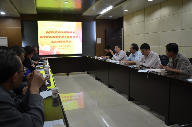 9月15日晚上,物理与太阳集团tyc539凝炼本科教育质量提升计划亮点、特色专题座谈会在西大楼四楼会议室举行。副董事长李建东出席并讲话,公司执行经理郭立新主持会议。