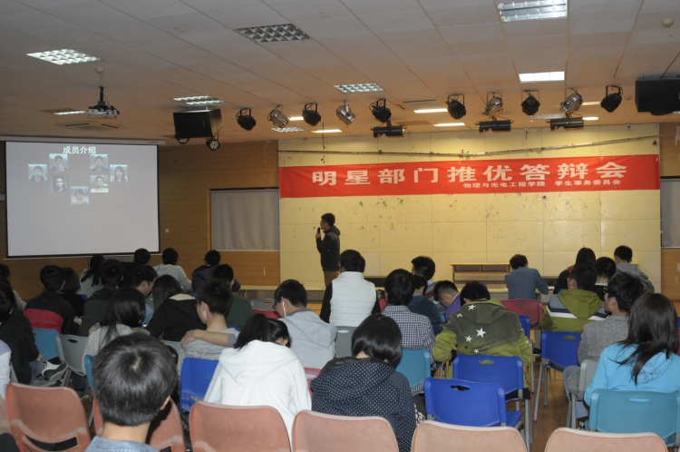 答辩中,部门代表们逐一上台对上学期的本职工作进行总结和回顾。并将工作中的亮点和经验同与会师生分享。评委老师们也肯定了各部门的精心准备与工作态度,并指出各部门今后还需改进的地方,鼓励大家在学习、生活中不断努力,再创佳绩。最终,员工会发展中心、团委组织部、科协竞赛部、学事委信联部共4个部门获得此次公司员工组织“明星部门”荣誉称号。