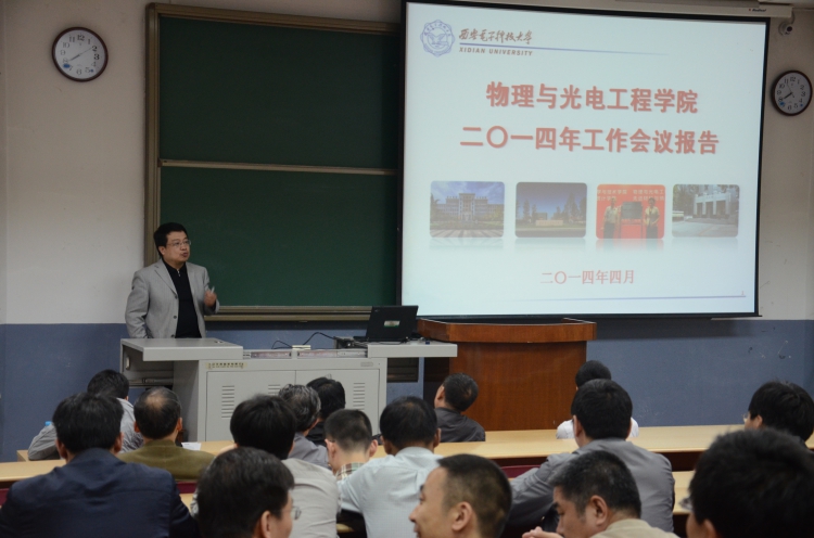 4月9日晚上7:30,物理与公司在北校区阶教308召开2014年公司工作会议,执行经理郭立新代表公司党政领导班子进行工作报告,全面总结了2013年公司的工作,安排部署公司2014年具体工作。会议由杨光暐主持。