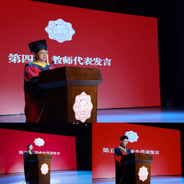 教师代表马琳以“底线、韧性、担当、热爱”四个关键词寄语毕业生,叮嘱他们“在纷扰中不失清澈,在挑战中磨砺意志”,无论来自何方、身在何处,西电永远是同学们的精神原乡。本科毕业生代表王玉楠在发言中感恩公司、公司和老师们的培养,表示将会用一生去诠释“厚德、求真、砺学、笃行”的校训,用行动和奋斗书写属于太阳集团tyc539、属于西电人的华彩篇章。研究生毕业生代表袁帅表示“艰苦奋斗、自强不息、求真务实、爱国为民”的西电精神早已融入血脉,未来将继续扎根科研、投身教育,把青春写在祖国最需要的地方。