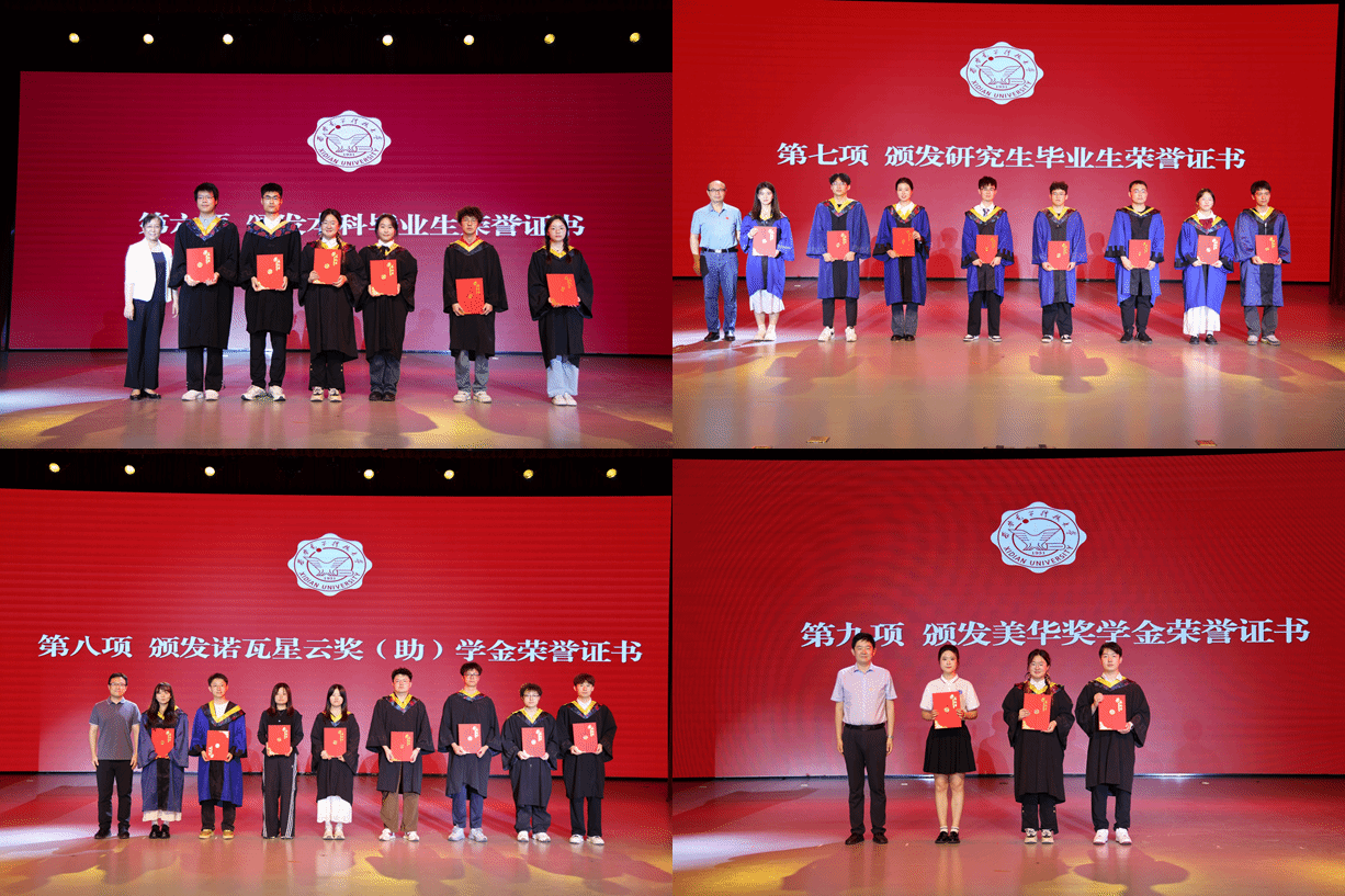 在学位授予仪式上,秦翰林、王石语、王晓蕊教授为毕业生们逐一拨穗授位并合影。同学们身着学位服,眼神坚定,与师长合影留念。与会领导、老师、员工,全体毕业生和家长们共同见证了这神圣而庄严的时刻。