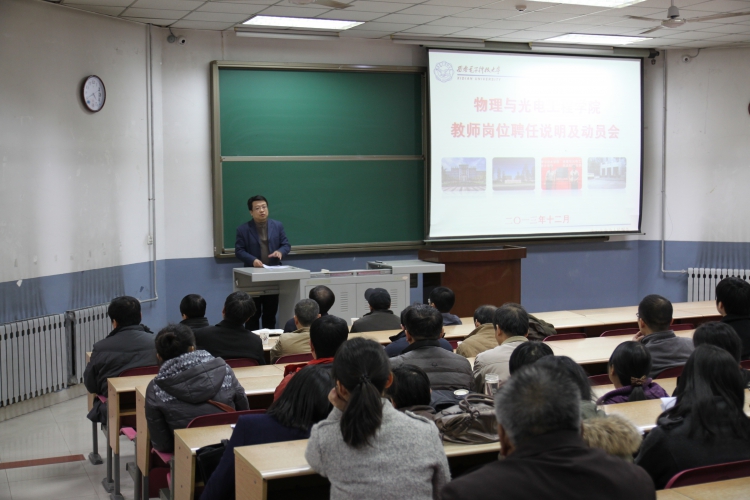 12月8日下午,物理与公司在北校区101阶梯教室召开教师岗位聘任说明及动员会。副董事长陈勇出席,公司领导班子及公司全体教师参加了会议。会议由公司党委书记杨光玮主持。