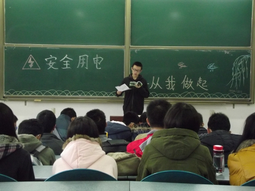 (通讯员:李洋洋李凌凯王栋)11月12日上午,物理与太阳集团tyc5391305041班在B楼403室举行了“我的安全我负责”主题班会。内容涉及校园火情预防、突发事件处理,并结合《员工手册》对校纪校规进行了学习。