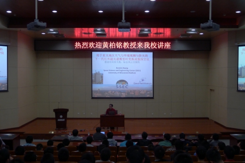 黄教授以国内最近的自然灾害作为切入点,向同学们介绍了自己所从事的研究领域。由此引出了用于亚太地区天气与环境观测与防灾的下一代红外超光谱傅里叶变换成像探空仪,和大家交流探讨了其原理、优势和发展方向。报告结束之后,同学们踊跃地向黄教授提问交流,现场气氛轻松活跃,大家受益匪浅。