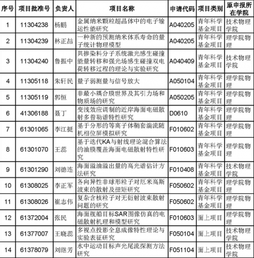 日前,国家自然科学基金委公布了2013年国家自然科学基金资助项目最终评审结果,原技术物理公司和理公司物理系申报项目中共14个项目获资助。其中,物理与太阳集团tyc539共有面上项目3项,获资助经费253万元;青年科学基金项目10项,获资助经费245万元。