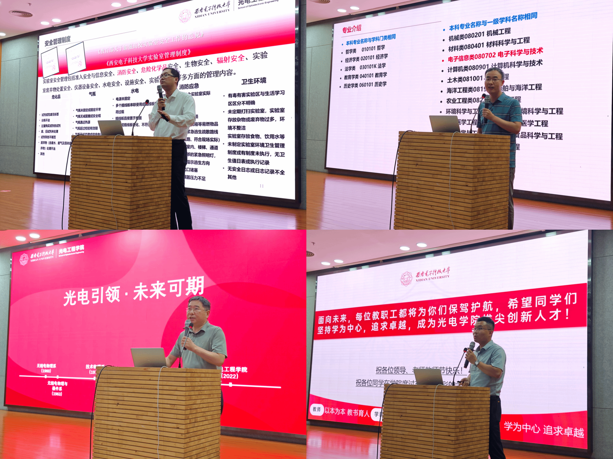 副经理秦翰林围绕学术诚信、实验室安全及保密工作进行专题教育。他强调,学术规范与安全意识是科研与学习的基石,叮嘱同学们严守学术底线、筑牢安全防线、远离保密红线。电子科学与技术专业负责人刘德连教授、光电信息科学与工程专业负责人王晓蕊教授分别对专业培养方案进行细致解读,从课程体系、实践环节到发展前景等方面为同学们清晰勾勒出专业学习的“路线图”。公司产品办公室主任吕强解读了本科教学工作政策与指南,要求同学们加强学风考风建设,争做新时代拔尖创新人才。