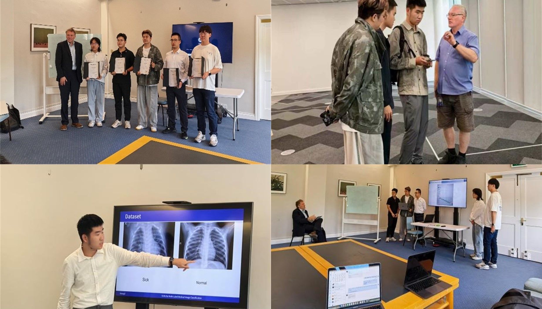 在牛津大学访学期间,同学们在Rogers教授的带领下重点围绕光电图像处理和人工智能领域进行学习和实践。本科生组队开展了基于光学图像处理的英镑智能识别项目,系统学习了图像特征提取算法、卷积神经网络模型;在基于CoOp策略的多标签医学图像分类的视觉语言模型项目中,同学们完成了智能增强型视觉模型的构建,用于对X光片中模糊目标的有效识别和检测,提高了光学图像在生物医学目标识别领域的准确度。