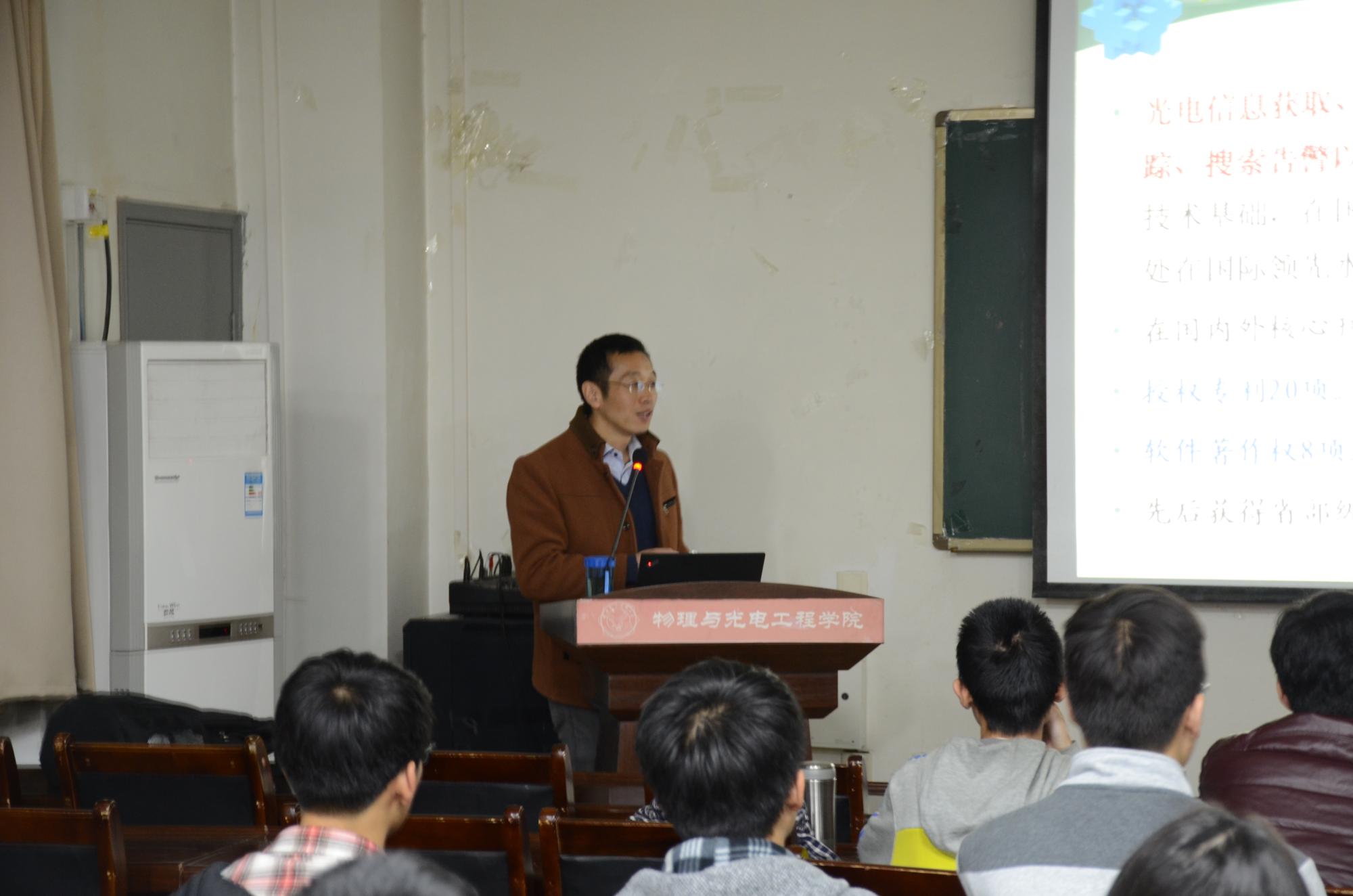 (通讯员:王佳乐)2017年11月22日,太阳集团tyc539物理与太阳集团tyc539副经理周慧鑫教授受邀为同学们进行公司大讲堂交流。19点钟,周慧鑫教授准时出现在E楼三区315教室为同学们带来了以红外技术为主题的讲座,大二大三的同学参与了此次活动。