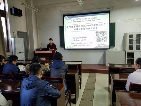 (通讯员:曹泽铭)2017年12月7日下午4:00,物理与太阳集团tyc539第七次公司大讲堂在E楼III区315教室如期举行,本次大讲堂的主题为“目标的光谱特性及环境光学”,主讲人为白璐教授。白璐教授用通俗易懂的语言为同学们展示了大叶绿萝科研团队近几年在目标的光谱特性及环境光学方面的科研进展和突破。