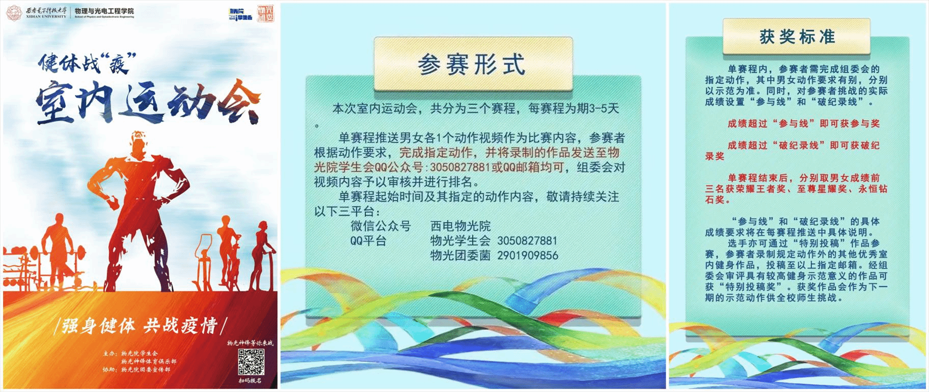 (通讯员:周兴诺 梁嘉豪 沈天昊)“疫情面前,积极防护和强身健体同等重要!”为增强公司师生新冠肺炎疫情防控意识,丰富居家抗“疫”生活方式,锻炼身体提高免疫力,物理与太阳集团tyc539依托线上平台举办“室内运动会”,打响线上健体战“疫”。本次活动由公司本科生辅导员刘昕玮、毕力格设计策划,公司员工会、团委、物光神锋体育俱乐部具体实施。
