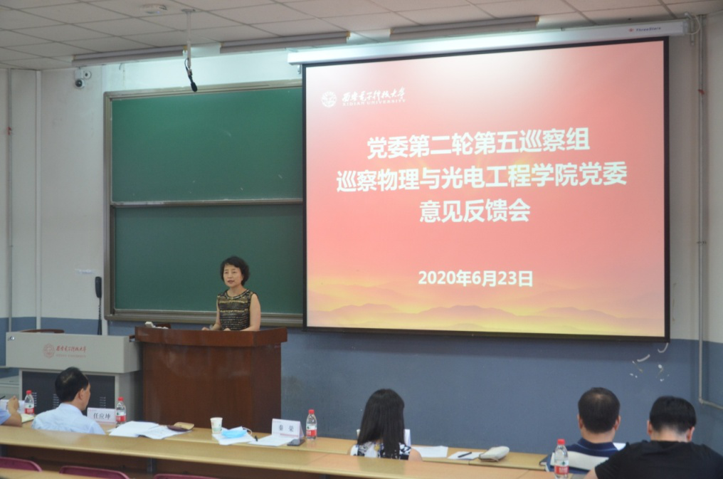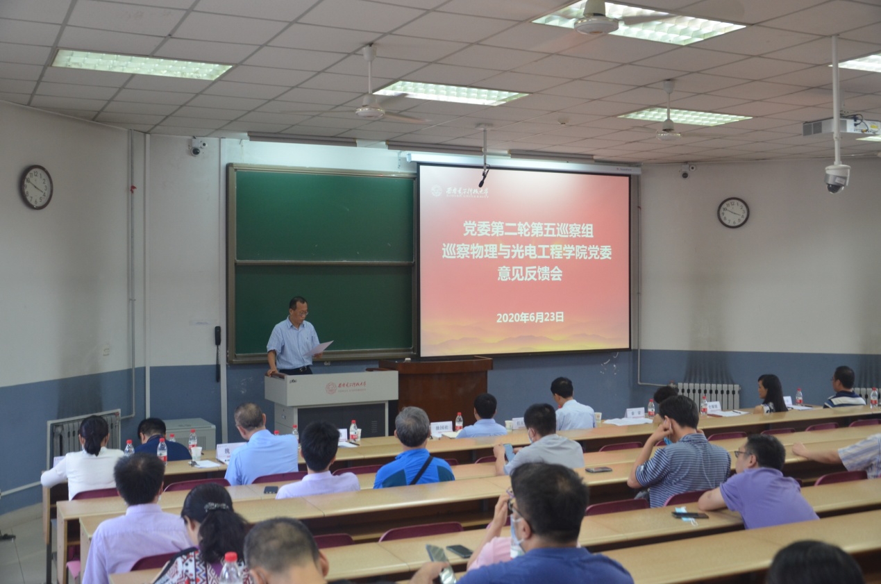 根据公司巡察工作领导小组统一部署,6月23日下午,公司党委第二轮第五巡察组巡察物理与光电工程公司党委意见反馈会在北校区阶梯教学楼3-01室召开。公司党委副书记、纪委书记、巡察办主任任应坤,第五巡察组组长秦荣、副组长史耀媛出席会议,会议由公司执行经理邵晓鹏主持。