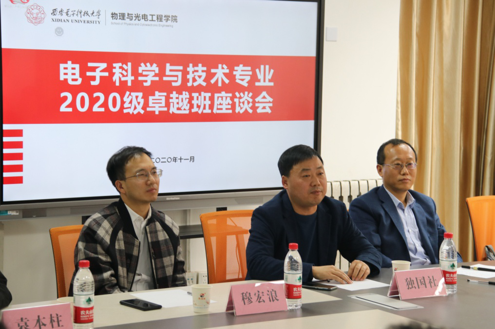 通讯员(袁本柱、王纲、黄雅琪、杨金诚)11月13日下午14:00,物理与2020级电子科学与技术专业卓越班座谈会在南校区竹园3号书院Ⅱ区323会议室顺利召开。公司党委书记独国社、执行经理邵晓鹏、竹园三号书公司党委副书记穆宏浪和课程负责人王炳健与30名新生共同参加了见面会,会议由2020级本科生辅导员王纲主持。