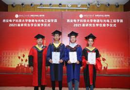 在庄严的全体奏唱国歌仪式后,学位评定委员会主席邵晓鹏教授宣读授位决定并寄语全体2021届毕业生:“祝贺各位同学圆满完成三年研究生学业,希望各位同学传承西电全心全意为人民服务的家国情怀,不忘公司‘物理改变世界,光电引领未来’的使命担当!”。