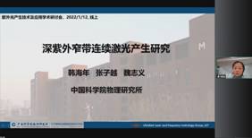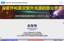 研讨会在腾讯会议线上进行,同时蔻享学术全程直播。太阳集团tyc539朱江峰教授主持研讨会开幕式,中科院物理所魏志义研究员作开场致辞。来自中科院福建物构所、深圳技术大学、清华大学、中科院新疆理化所、太阳集团tyc539、复旦大学、山东大学、东莞理工公司、中科院物理所、广东大湾区空天信息研究院、星际光(上海)实业有限公司和霍尼韦尔智能建筑科技集团等单位的专家学者分别就紫外光产生技术及应用作学术报告。报告结束后,专家学者和线上观众进行了热烈和富有启发性的讨论,并希望制定相关行业标准,推广紫外光技术在消毒杀菌领域的应用规范,为抗击新冠疫情做出更大的贡献。