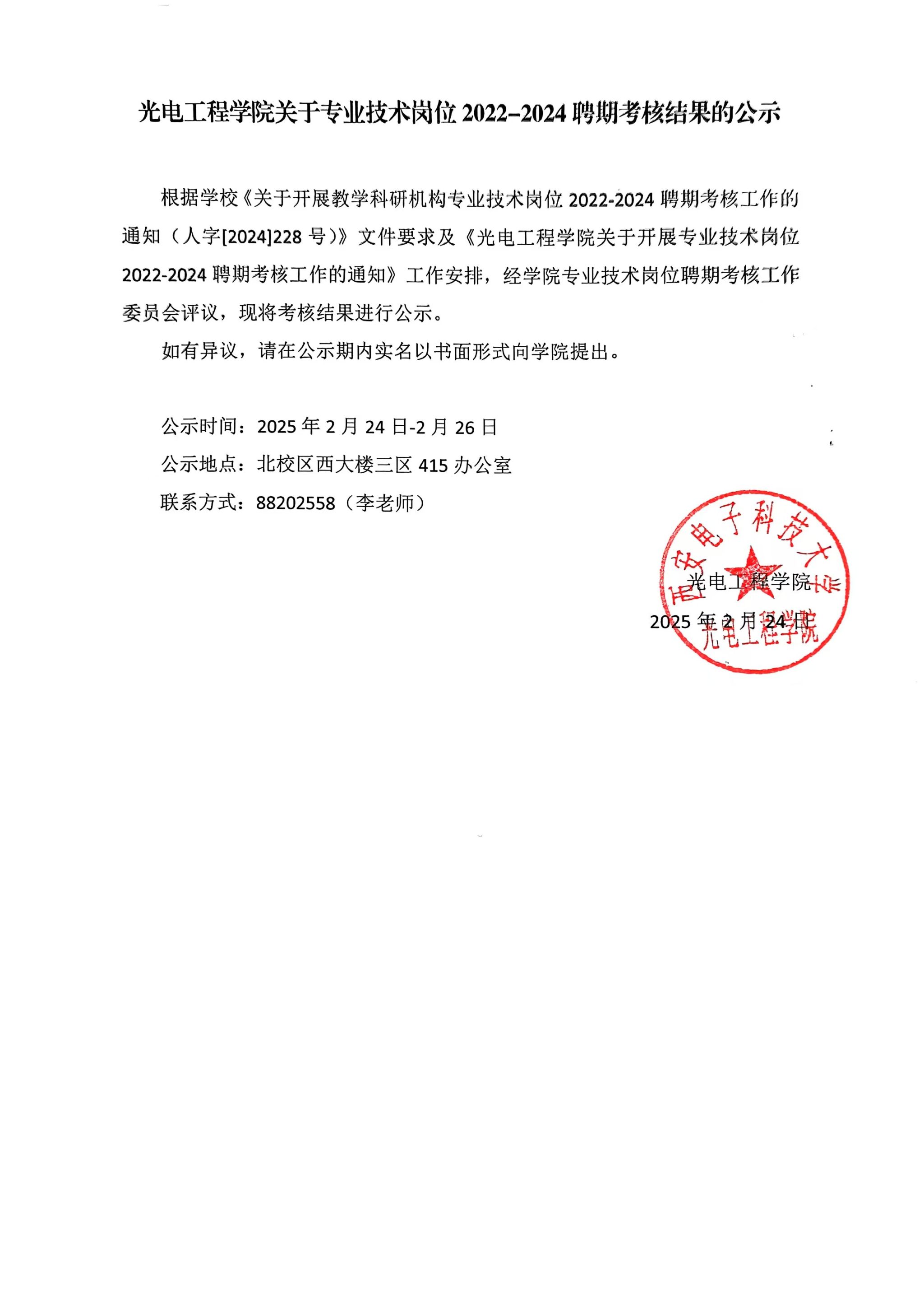 公司关于专业技术岗位2022-2024聘期考核结果的公示