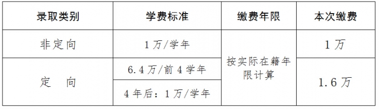 根据实际住宿情况缴纳住宿费,北校区住宿的新生首年住宿费统一收取1000元,入校确定住宿标准后,多收部分自动充缴第二年住宿费或退还本人;南校区住宿的新生,首年住宿费统一收取1200元。