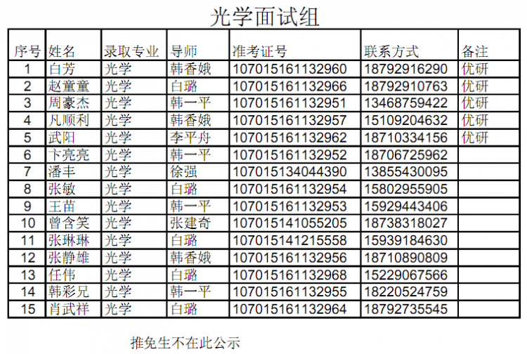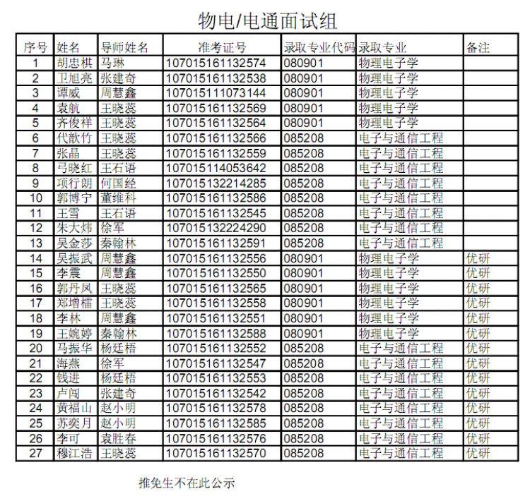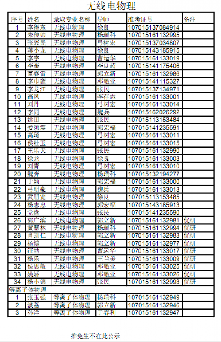 【公示】物理与2015级硕士研究生拟录取名单公示