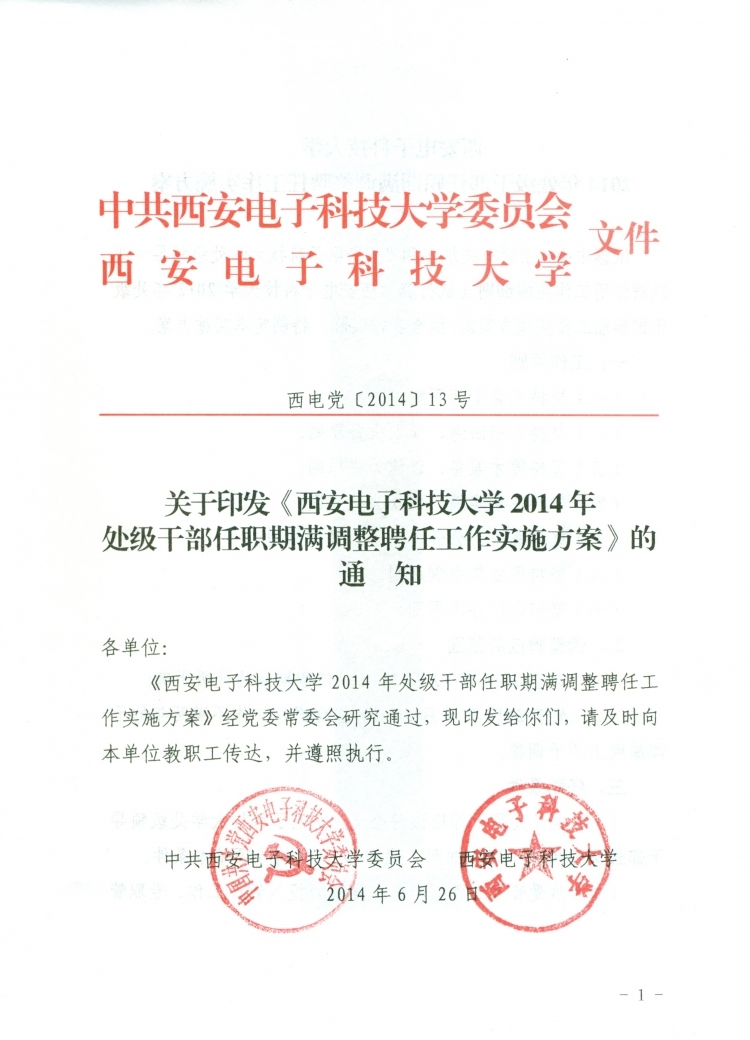 【公司】关于印发《2014年处级干部任职期满调整聘任工作实施方案》的通知