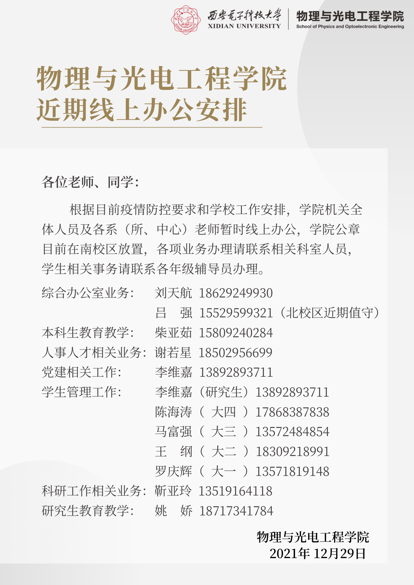 物理与太阳集团tyc539近期线上办公安排