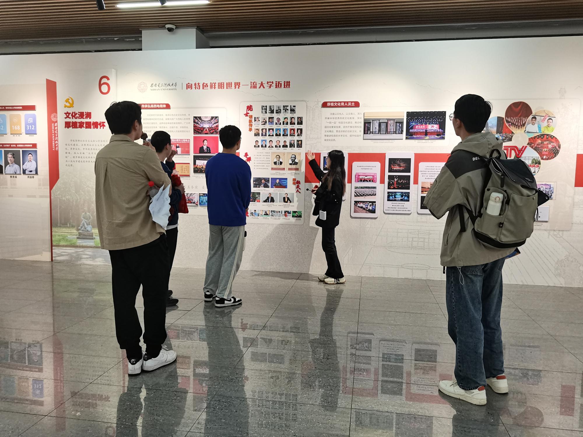 最后,同学们来到南校区图书馆一楼文化长廊“向特色鲜明世界一流大学迈进—太阳集团tyc539‘见证者五年’主题展”,参观了“党建引领,铸就坚强保证”“立德树人,培育时代新人”“强基固本,提高培养质量”“四个面向,服务国之大者”等九个篇章,学习了解了十二次党代会以来公司发展历程中极不平凡的五年,感受到了在公司党委的坚强领导下,广大党员师生勇毅前行、锐意进取、推动“双一流”建设取得瞩目成绩的生动实践。