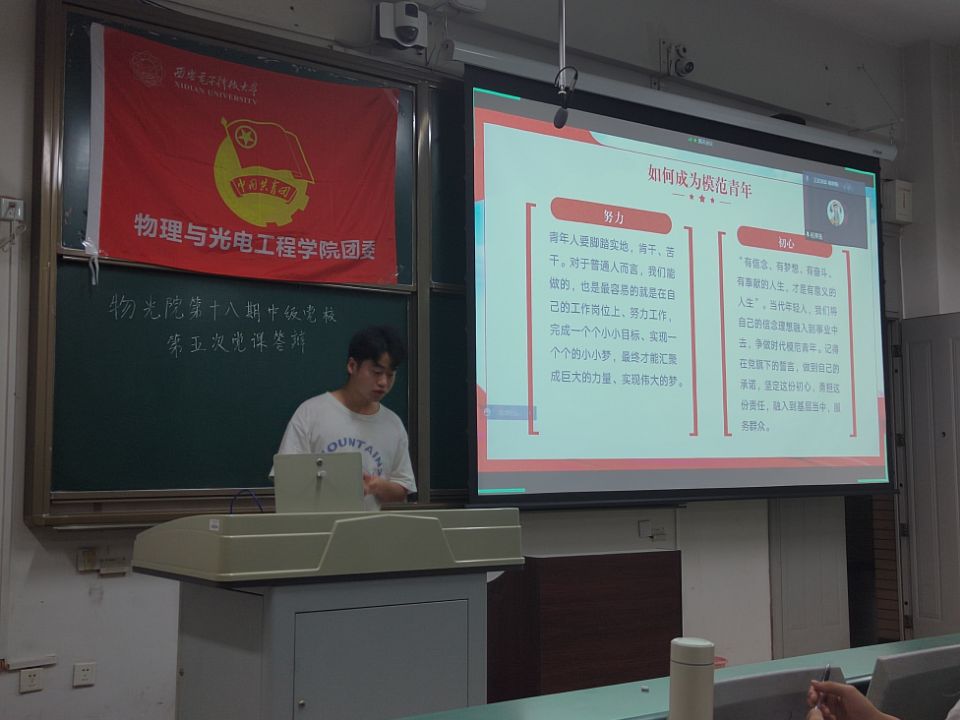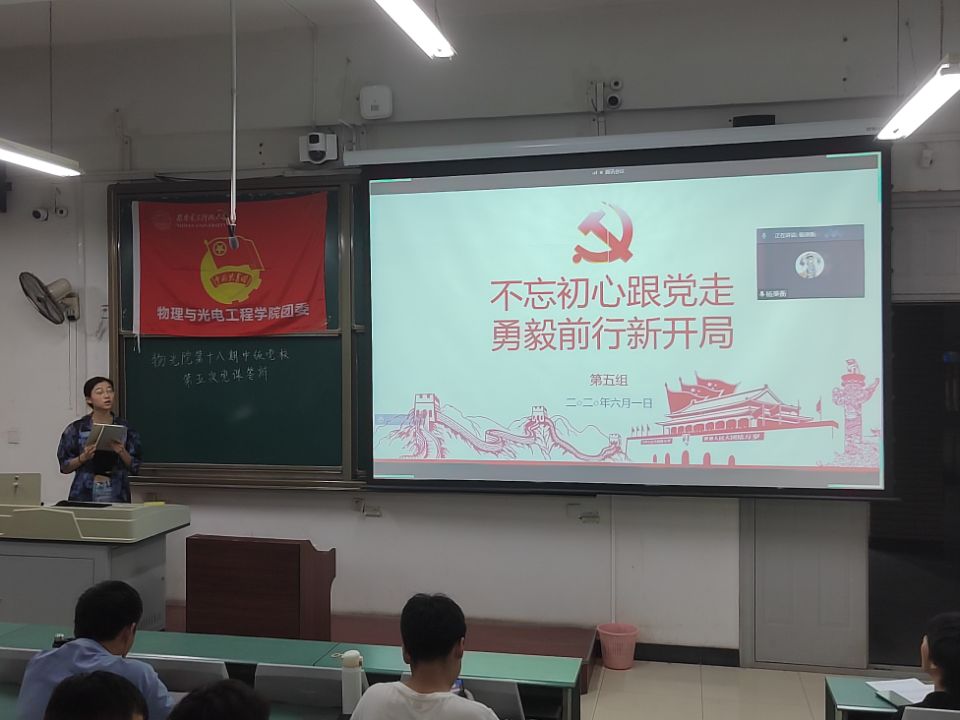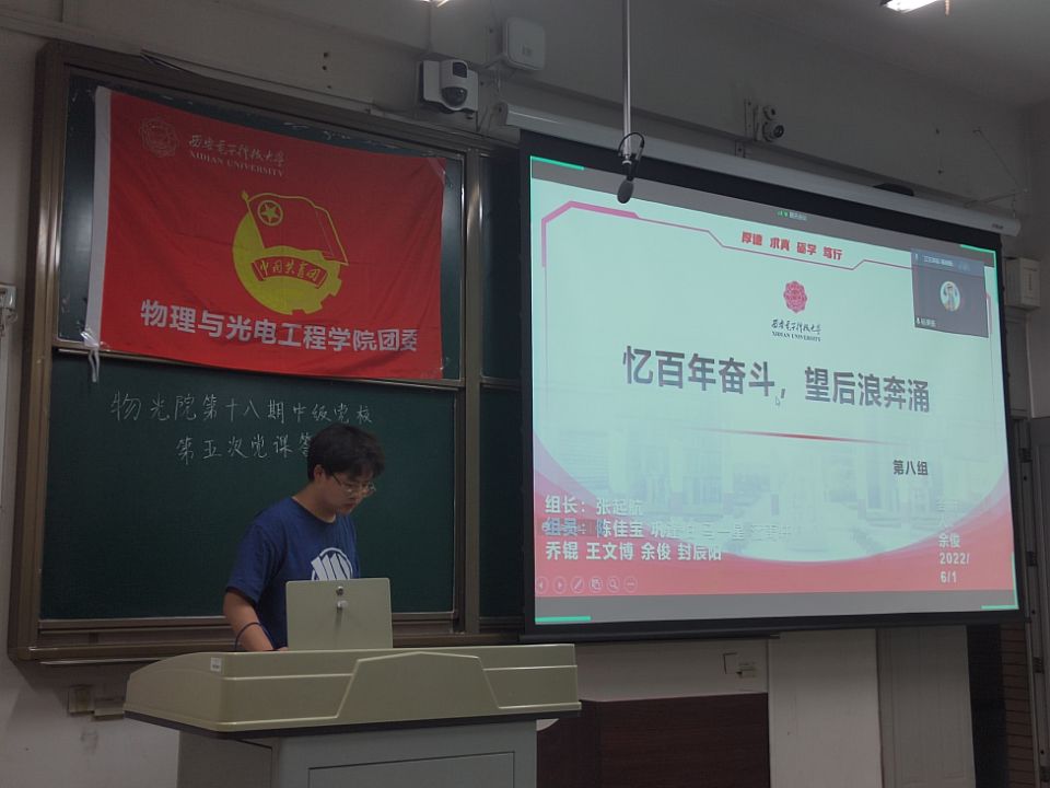 6月1日晚19时,太阳集团tyc539、物理公司第18期中级党校第五次党课在南校区教学楼A楼314教室进行。本次党课以“喜迎二十大、永远跟党走、奋进新征程”为主题,全体学员分为9组,在分组讨论的基础上,通过答辩展示分享学习成果、交流学习心得。