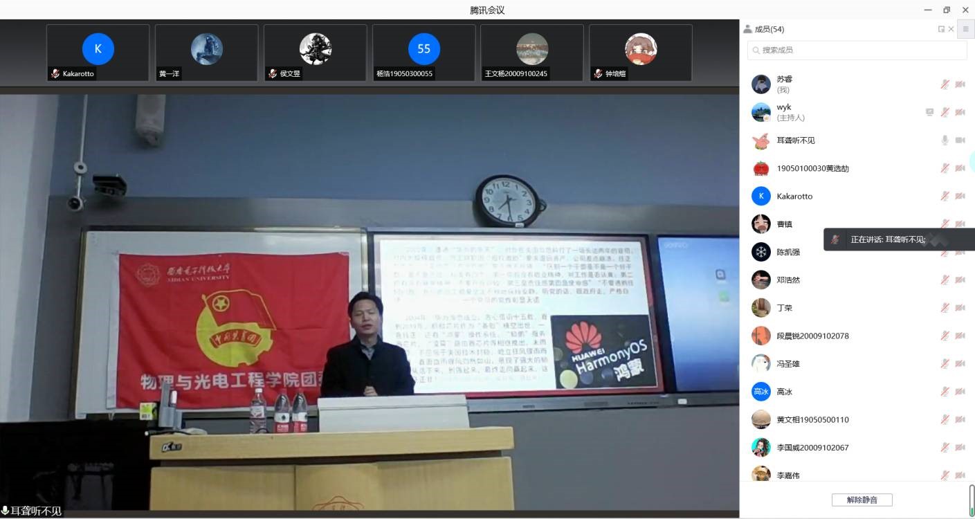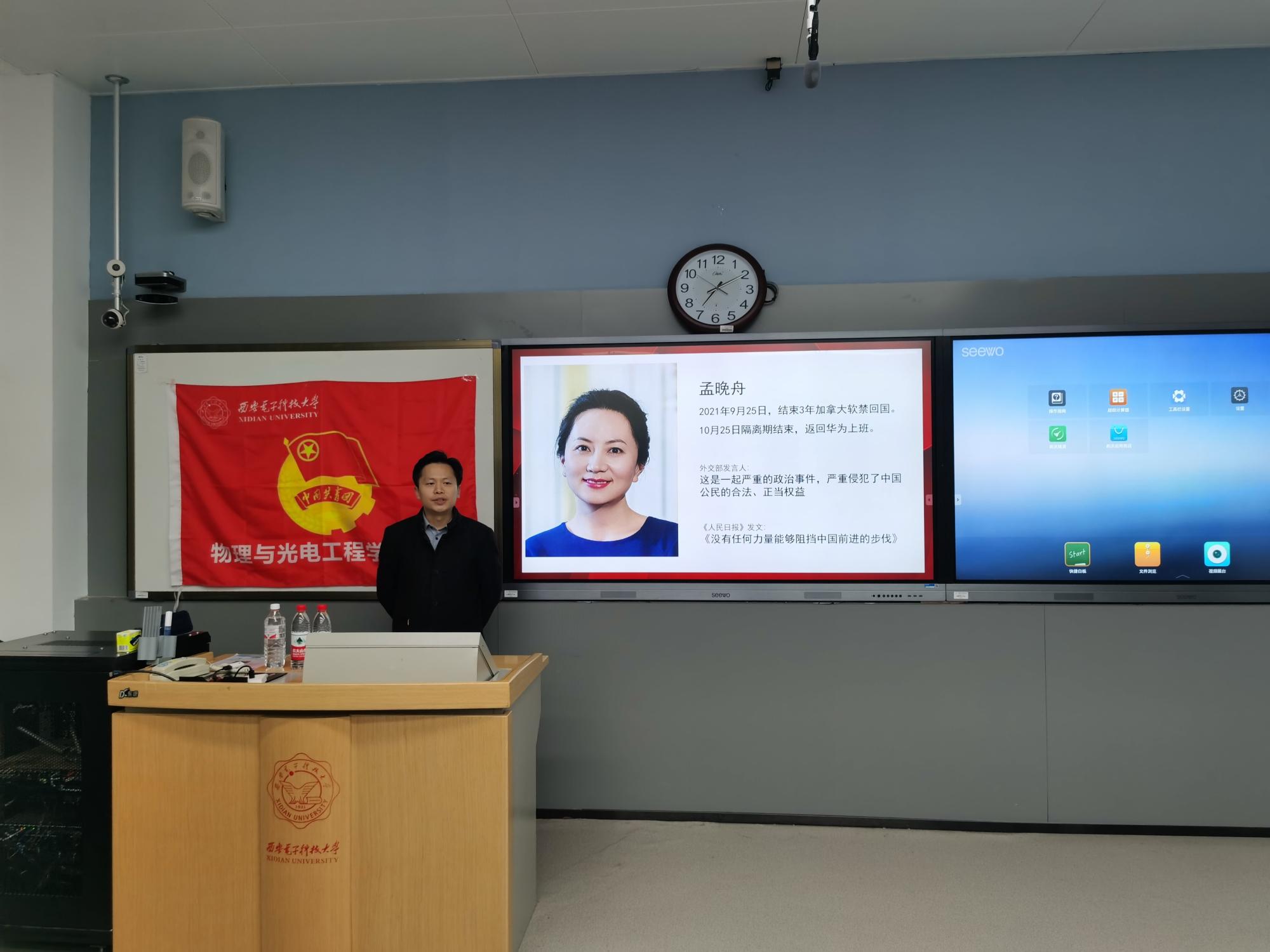党课伊始,黄军荣老师带领大家观看了抗美援朝爱国短片,表现出了中国共产党员、中国军人的优秀品质。随后,黄军荣老师以孟晚舟归国和华为集团发展为引,介绍到任正非不仅是一名优秀的共产党员,他还是一名有着十年经验的军人。“我们要用艰苦奋斗,英勇牺牲,打出一个未来30年的和平环境,让任何人都不敢再欺负我们”这句话,完美的诠释了任正非作为一个党员的红而专的精神。