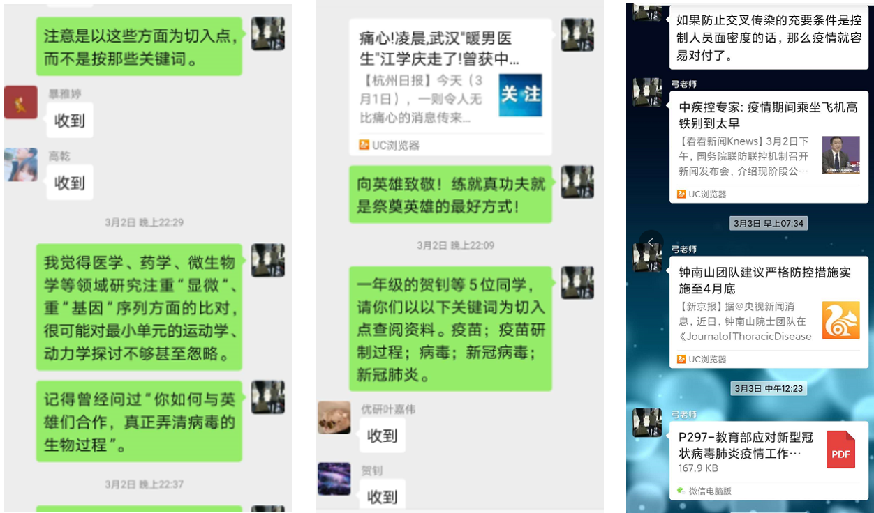 在教师党员的带动下,研究生各党支部结合自身特点,顺利开展了特殊时期的思政宣传、支部建设、党员发展等工作,研究生党员进一步发挥主观能动性,动手动脑,支援一线。