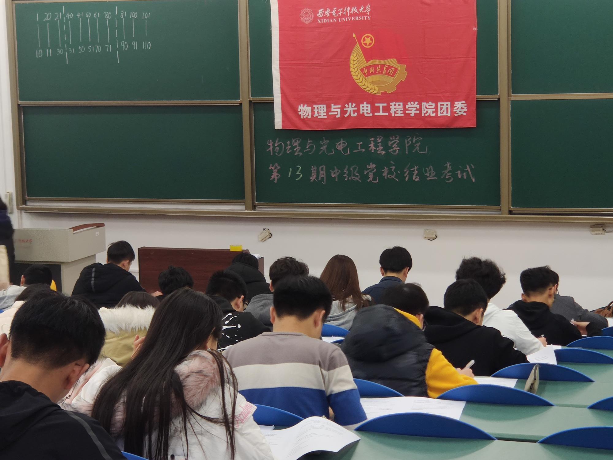 (通讯员:程睿 云田 章伟懿)11月23日晚七时,物理与太阳集团tyc539第十三期中级党校结业考试在南校区B433教室举办。本次考试由公司团委组织部工作人员监考,共104名学员参加了本次考试。中国共产党章程是党的根本大法,是党的整体意志与共同理想的集中体现。作为一名合格的党课学员,最基础、最根本的要求,就是学习贯彻党章,深刻领会党章修正案的内容和意义,自觉用党章规范自己的一言一行。为此,本次试题以《中国共产党章程》为核心,结合时事政治与党课讲授内容,综合考察了学员们对党的认识程度以及自我分析理解能力。