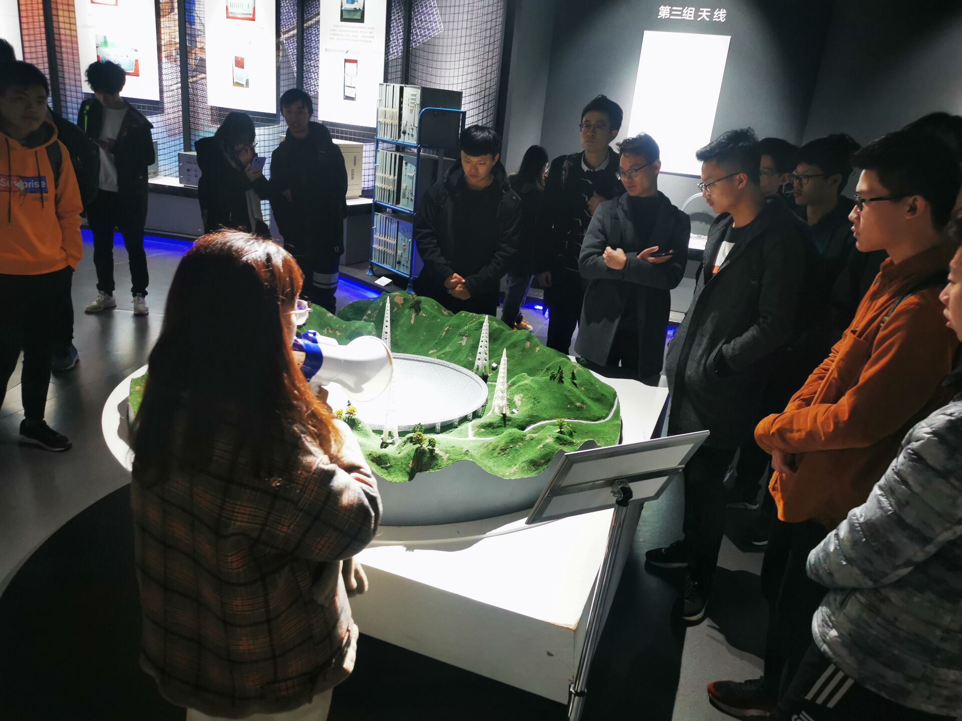 党课伊始,公司团委组织部工作人员将公司队伍分为三组进行参观学习。由讲解员们带领同学们进行耐心的讲解,首先参观的“序厅”为我们展示了世界电子科技发展的大事件,“通讯厅”见证了我国通讯技术的发展史,“雷达厅”展示了我国自主知识产权世界最大单口径、最灵敏射电望远镜FAST模型,这个让世界叹为观止的仪器也有我们西电人做出的重要贡献。在“计算机厅”中,我们见证了中国计算机从无到有的发展,见识到了从进口的苹果机到自主研发的天河一号的计算机实物。“电子元件厅”展示了从繁到简各式各样的电子元器件,这些展品见证着我国电子技术的高速发展。