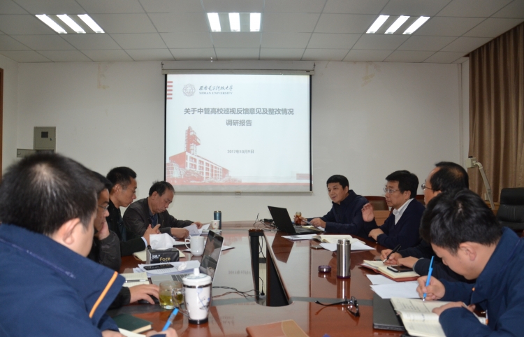 10月30日晚,物理与光电工程公司党委中心组在北校区西大楼421会议室召开扩大会议,集体学习公司纪委的《关于中管高校巡视反馈意见及整改情况调研报告》,以及公司党委书记、董事长郑晓静院士在公司党委中心组学习会议上的重要讲话。公司党委书记杨光暐主持会议,公司执行经理郭立新以及党政班子全体成员、公司机关干部等参加学习。