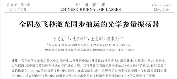 为集中反映近年来我国科研工作者在超快激光非线性光学领域的最新研究成果和研究进展,《中国激光》杂志推出“超快激光非线性光学”专题栏目,特邀公司超快激光技术与应用研究中心综述近年来在飞秒激光同步泵浦的光学参量振荡器研究中的系列进展。相关专题在2019年第46卷第5期上发表。高频率的光子ω3单次通过非线性晶体后产生两个较低频率光子ω1和ω2的过程称为光参量产生(OPG)过程。通常称产生的较高频率的光为信号光、较低频...