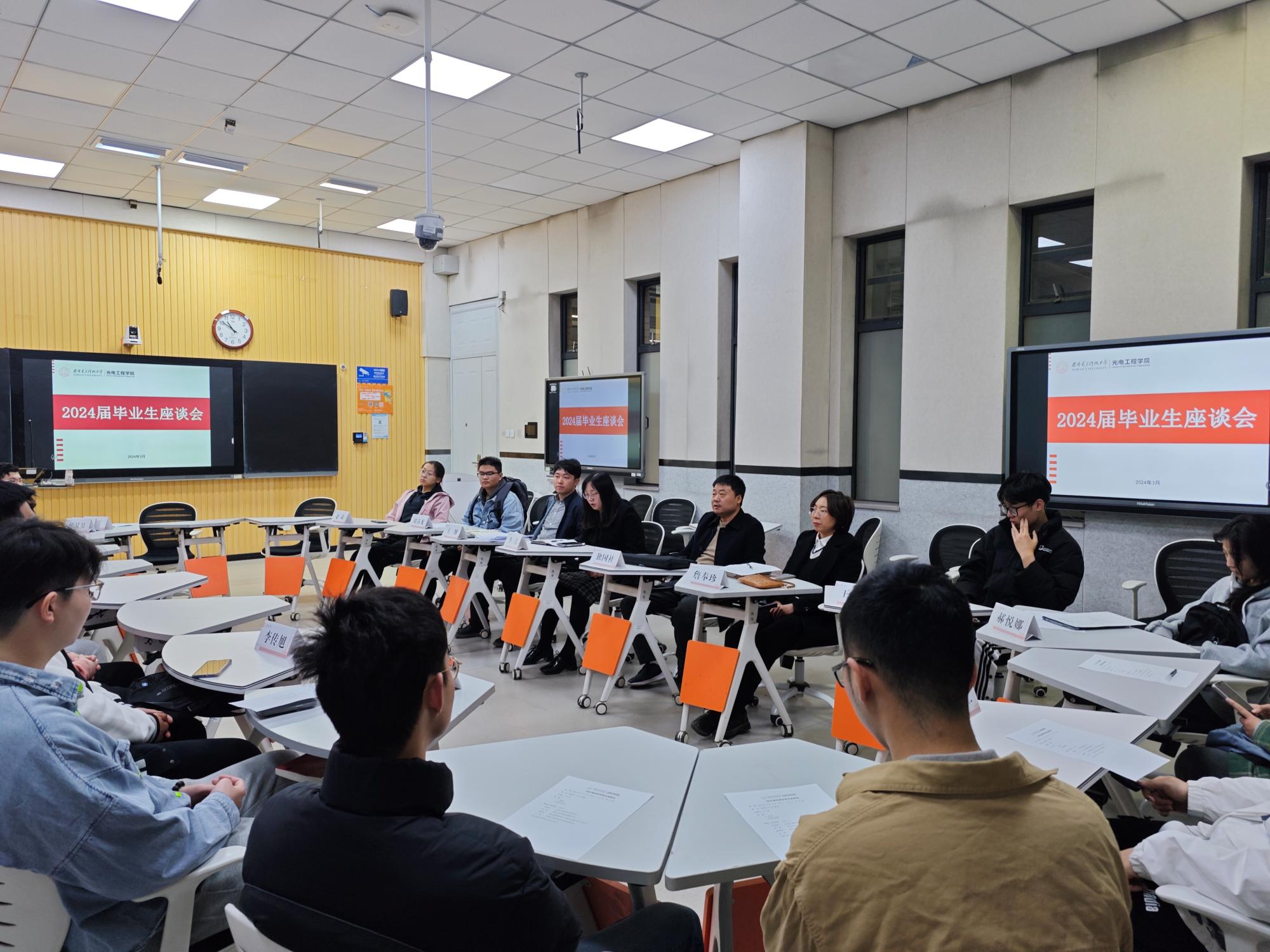 (通讯员:郝悦娜、李智博)为进一步推动2024届本科毕业生升学就业,3月13日上午,公司在南校区C-107教室组织召开毕业生代表座谈会,公司党委书记独国社、副书记李洁,就业指导服务中心研究生就业办公室主任詹奉珍,以及2024届本科毕业生代表20余人参加座谈交流,会议由2024届本科毕业班辅导员王纲主持。与会毕业生逐一发言,分享个人情况、毕业去向规划、就业准备以及主要面临的困难问题,打开了座谈交流的话匣子,...